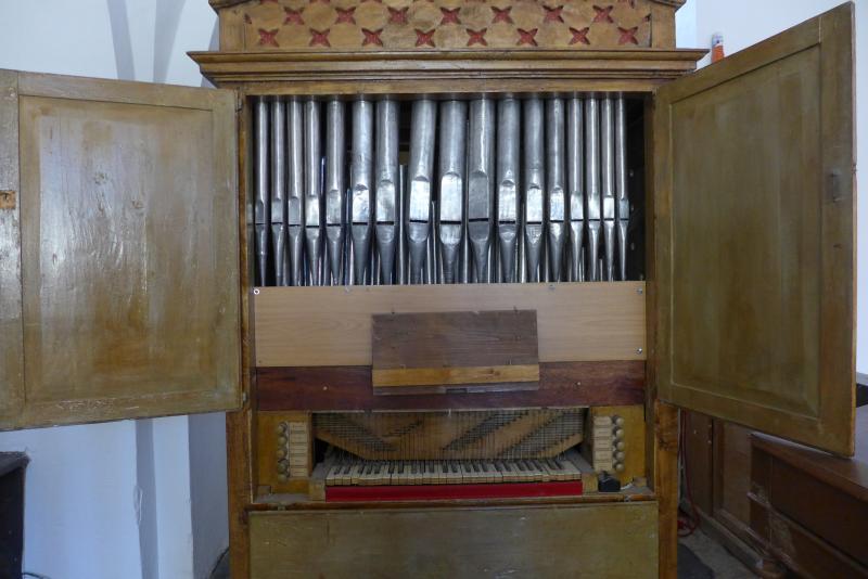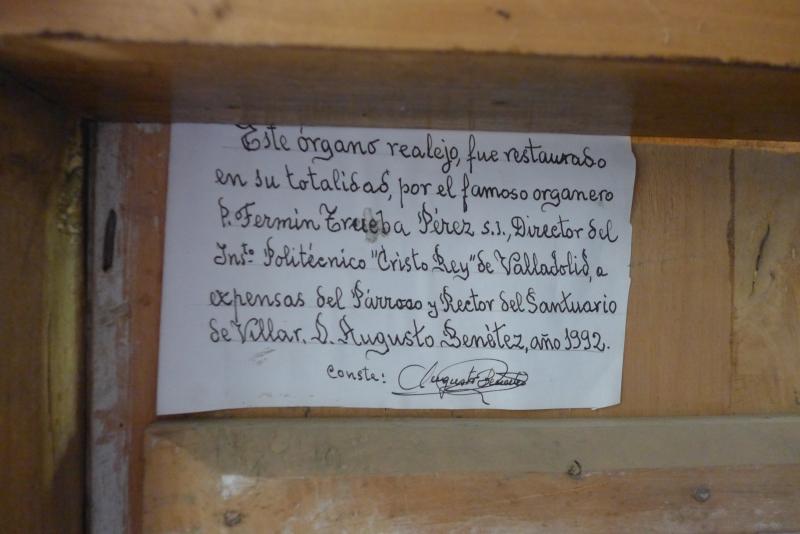 xxx Tipo realejo, 4 octavas y una corta, tubo estaño, 10 registros (ver ficha inventario)
