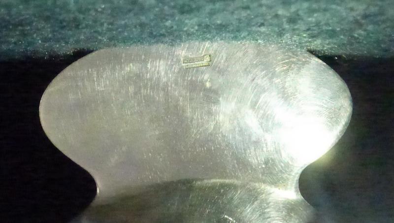 En el reverso del asa aparecen los punzones del taller Meneses: "M" (rodeada de un resplandor), MENESES, y otro ilegible