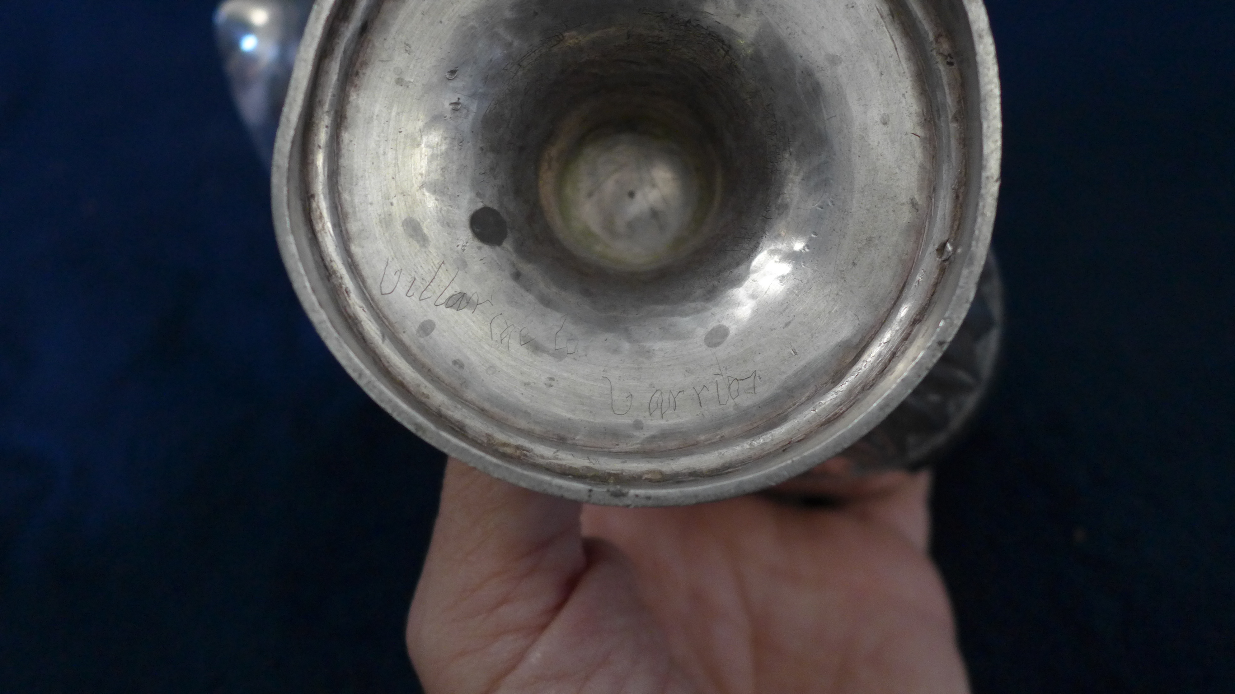 En el interior de la base, se grabó con un punzón la siguiente leyenda: "Villar de los barrios".