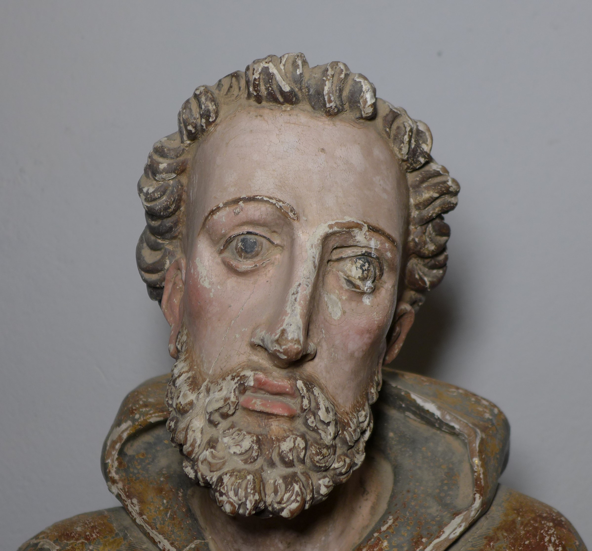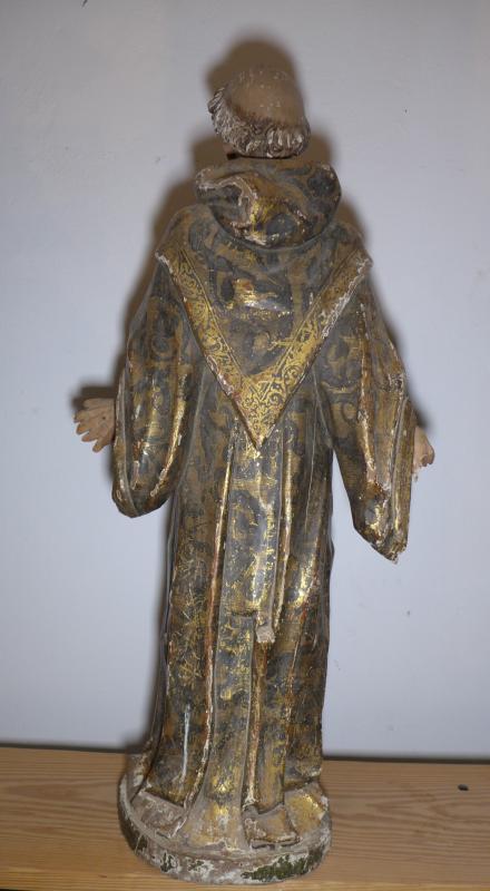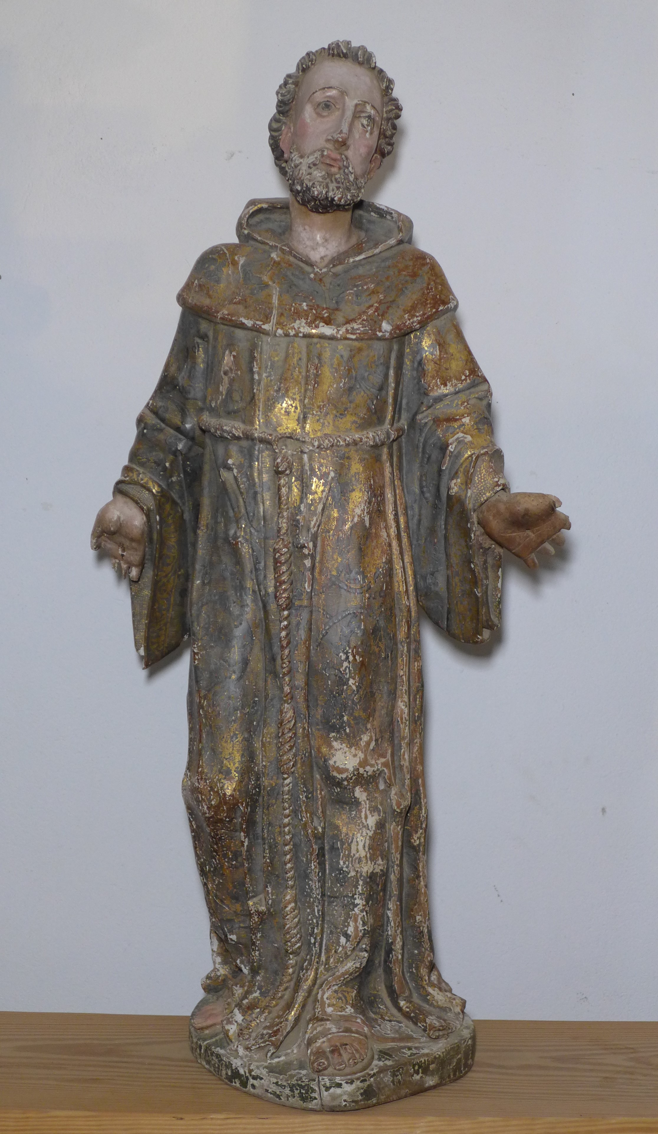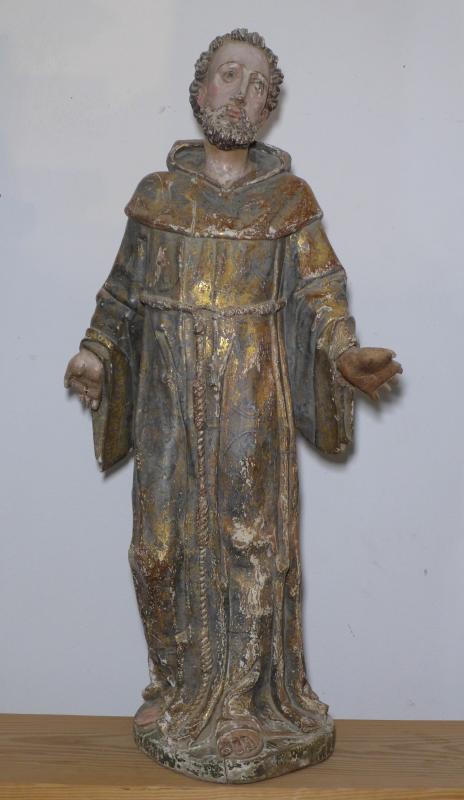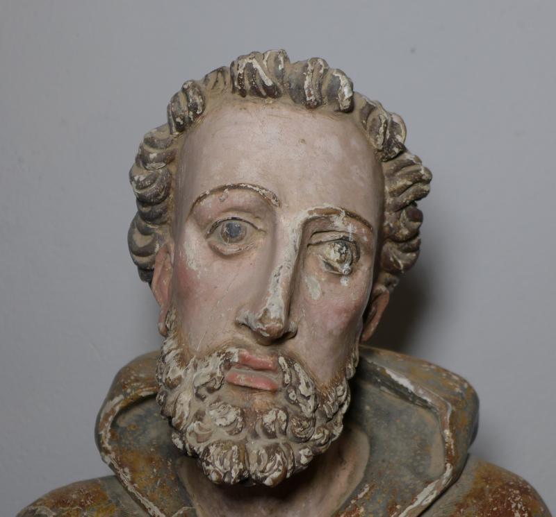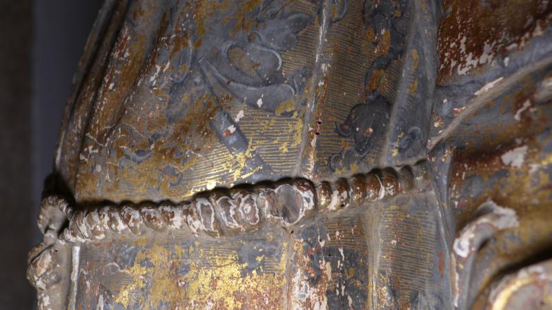 Apareció junto a un crucificado conservado hoy en la sacristía durante las obras realizadas en el bajocubierta del templo