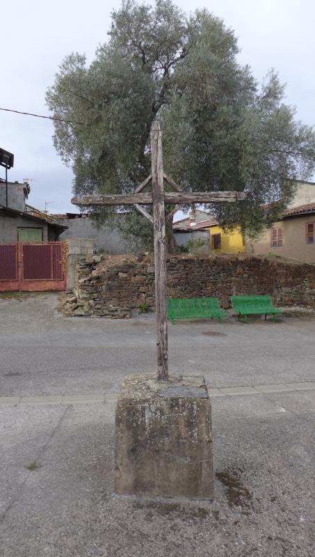 Crucero de factura contemporánea dispuesto en las inmediaciones de la ermita de las Encarnación, quizá remedando la existencia de otros anteriores. Se alza sobre un basamento cuadrangular de piedra y la cruz propiamente dicha se talló en madera. Esta tiene perfil de cruz latina con unas piezas angulares en el centro para rigidizar su estructura y con unos remates afinados y redondeados en los extremos.