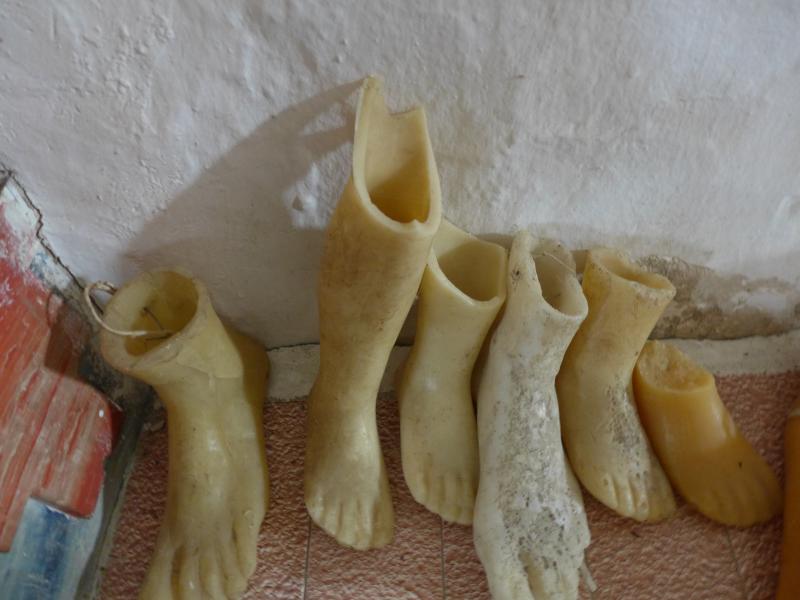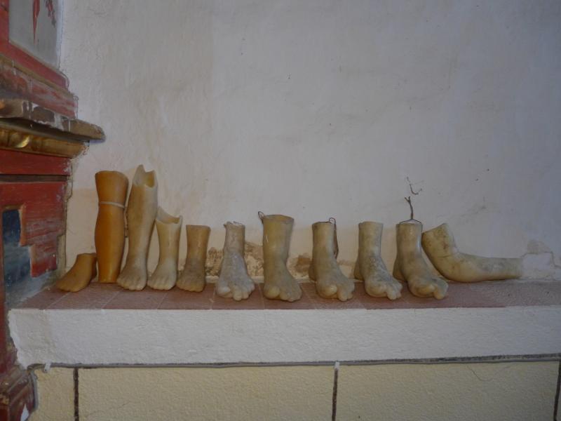Piezas de cera de exvotos anatómicos vinculadas al altar de San Tirso, entre ellas contamos 5 pies izquierdos, 2 derechos, 2 piernas y 1 brazo. Su estado de conservación es dispar, pero guardan ese interés etnográfico y antropológico de este tipo de objetos.