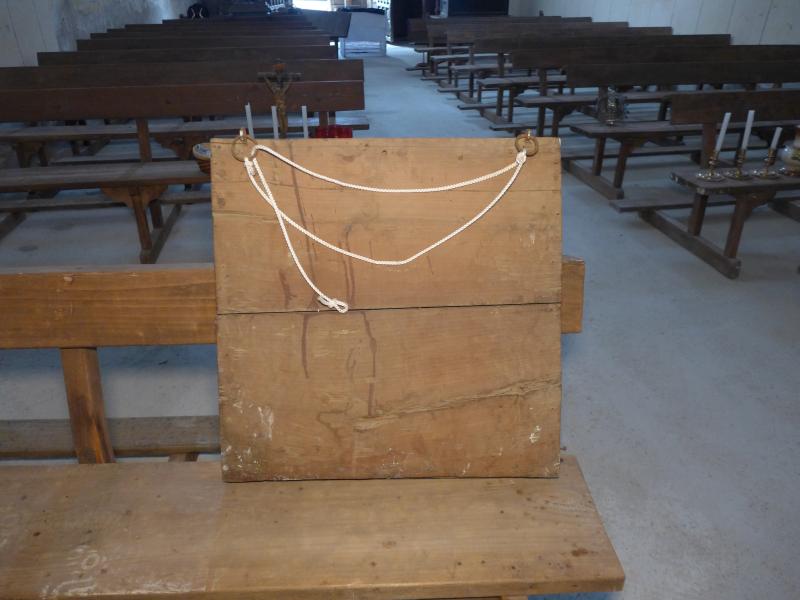 Pintura sobre tabla con la baja de Cristo al infierno de los justos. En ella encontramos a los condenados entre llamas, sobre ellos y a la izquierda Cristo Resucitado descendido al limbo para redimir a los justos, cautivos por el demonio. A la derecha un ángel, bajado del cielo, salva a una de las almas que perecían pasto de las llamas. Es una pintura ciertamente ingenua en cuanto su representación y factura, pero cumplía con su finalidad dentro de la liturgia de la Cofradía. Su creación pudo inspirarse en varios grabados que sobre el tema se conocían desde la segunda mitad del siglo XVI. En la parte inferior, sobre fondo blanco una inscripción alusiva al libro de Job y la redención de las Ánimas.