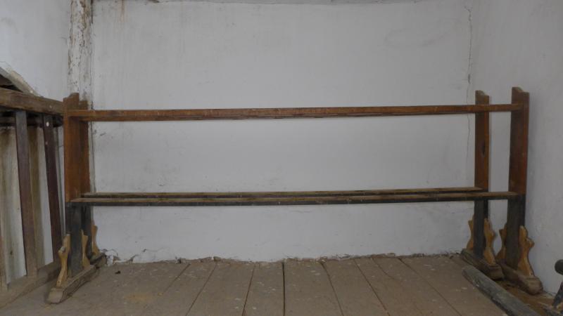 Mueble funcional de madera de chopo para colocar hachas. Se componen de dos pies, dos vástagos laterales y dos travesaños lisos.