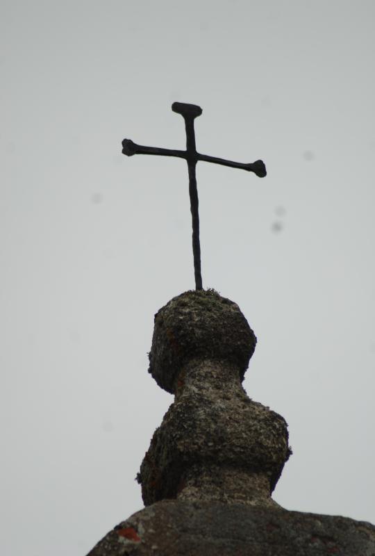 Sencillísima cruz de hierro que sirve como remate a la espadaña de la ermita. Parece que no contiene ningún tipo de anclaje o remate para unir los dos travesaños de la cruz, por lo que se unión se haría en el propio proceso de forjado. Tiene perfil de cruz latina, con los extremos de sus brazos ensanchados a martillo.
