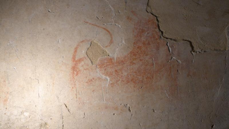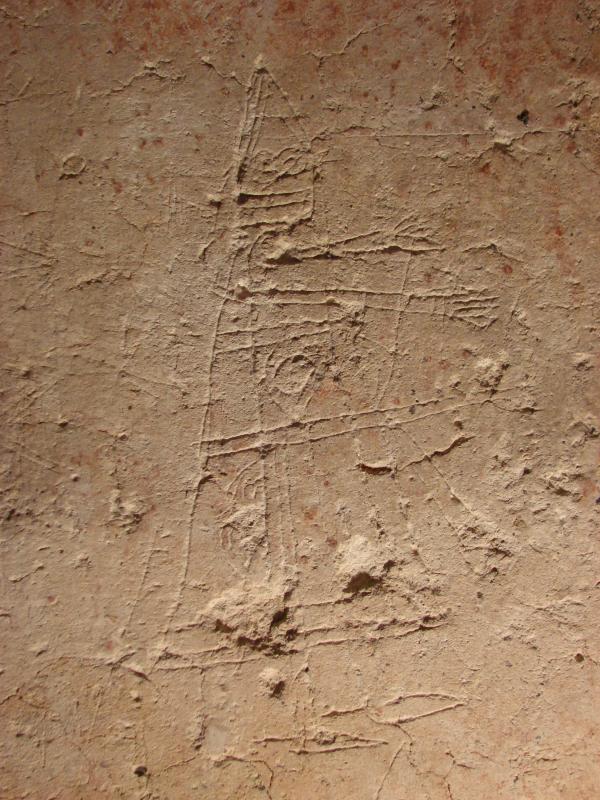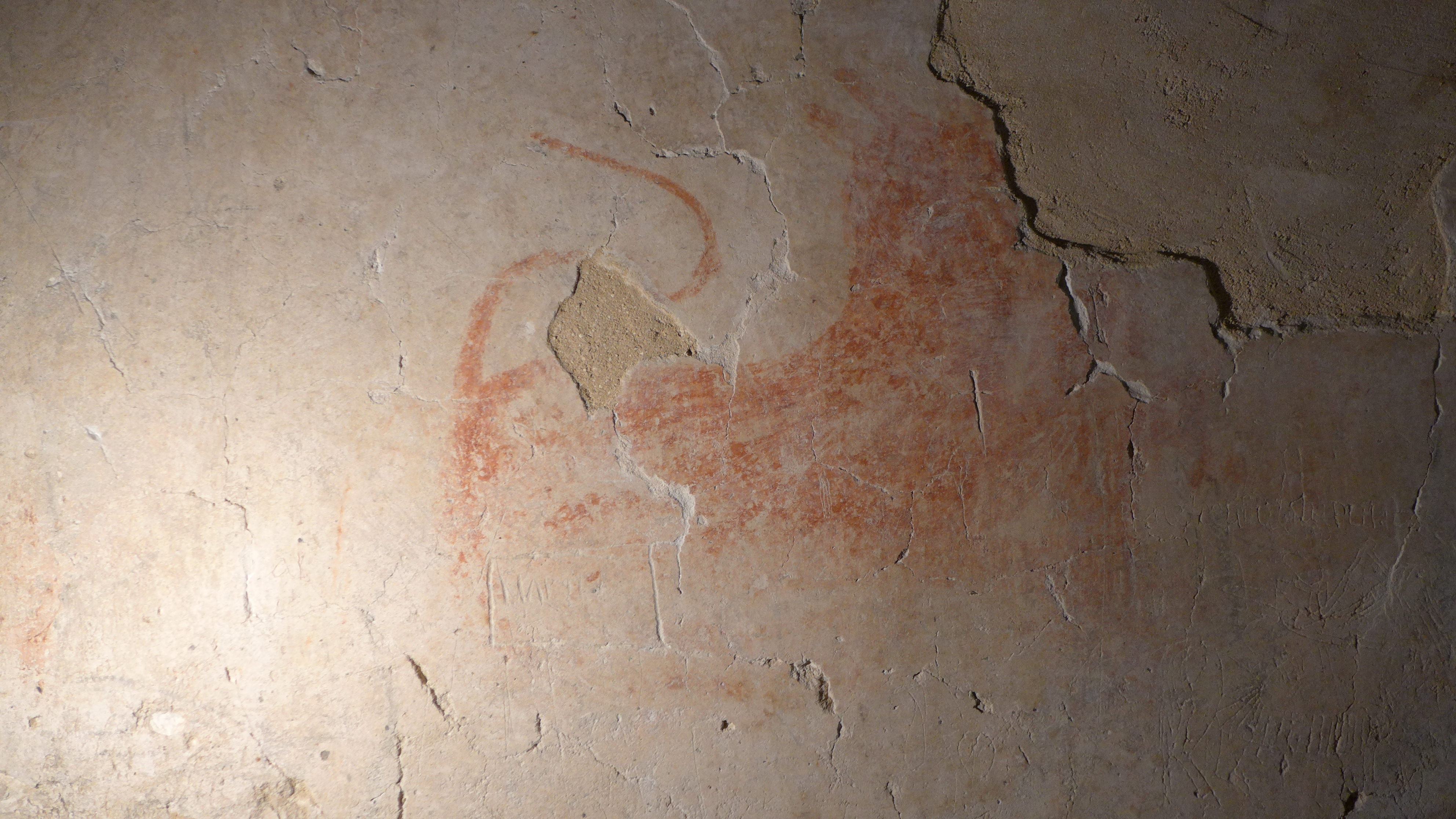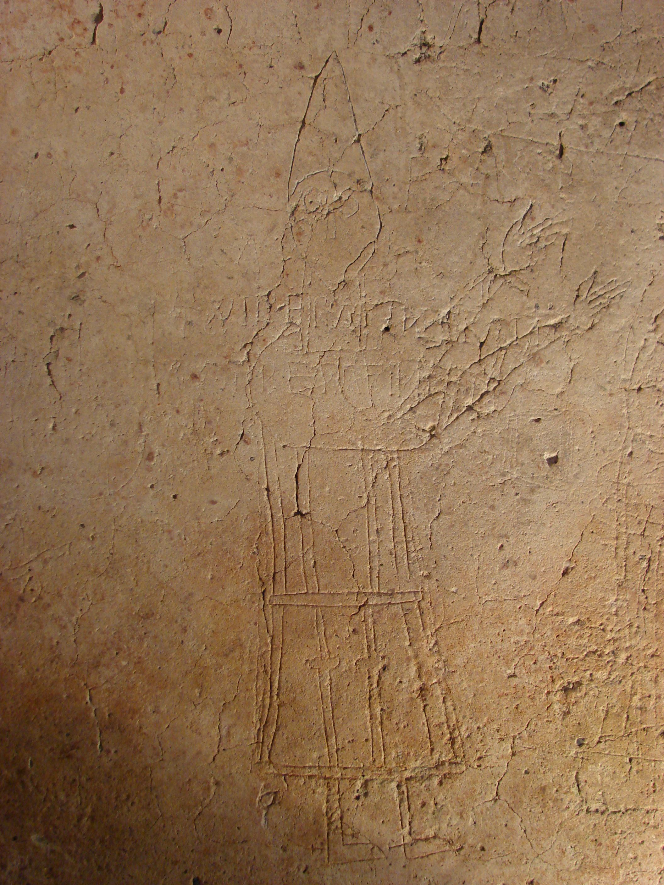 Diversos grafitos, mayormente figurativos y simbólicos. Los textuales se realizaron con letra carolina. Mayormente son incisos, pero no faltan algunos pintados con almagre. Las representaciones de personajes mitrados (abad u obispo) son muy similares a los de los códices del siglo X