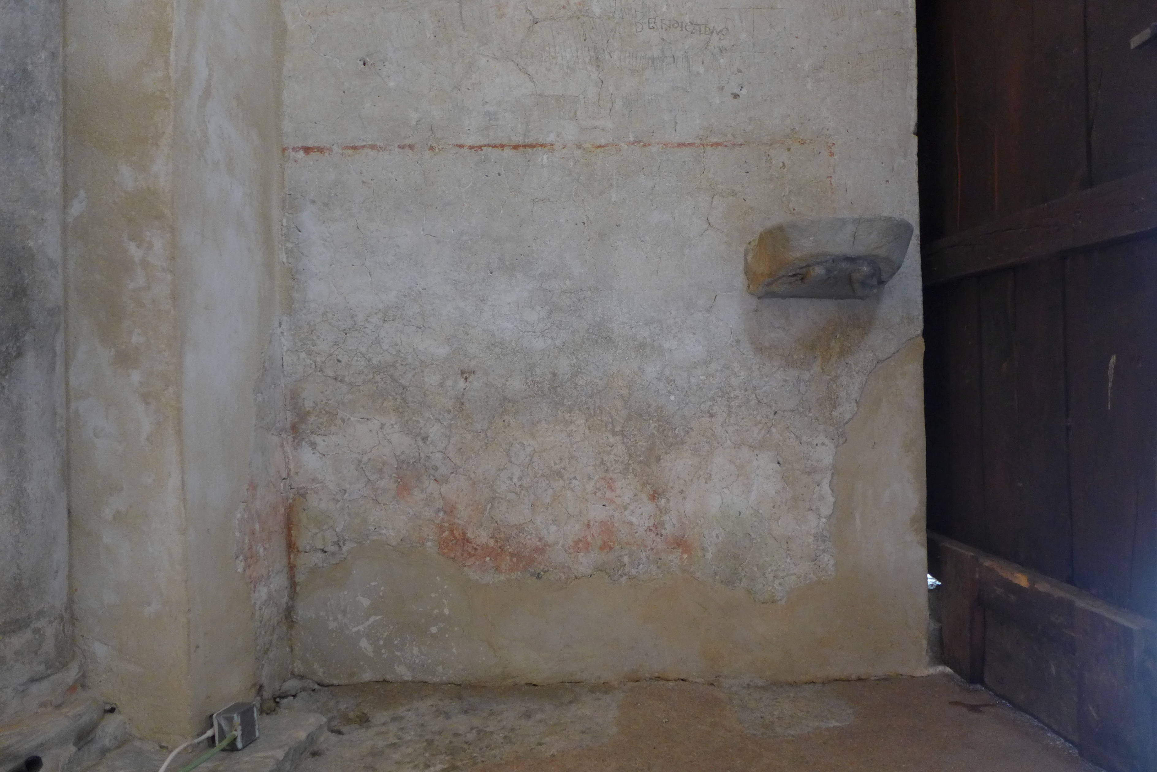 Zócalo de color rojizo que cubrió en su momento la iglesia, incluida la capilla de San Genadio.
