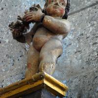 Retablo formado de banco, un solo cuerpo y ático. Carece de tabernáculo. En su organización horizontal consta de una calle central avanzada y dos entrecalles laterales, en realidad polseras sin inclinación.