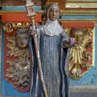 Retablo apoyado en el machón meridional que separa las cabeceras. Se conforma con banco, un solo cuerpo y ático. En su organización horizontal consta de una calle central avanzada y dos entrecalles laterales, en realidad polseras sin inclinación, de interés compositivo. El banco, acoge una tabla central dorada y con relieve policromado (Santa Gertrudis ante la Virgen con Niño) en el lugar tradicionalmente asignado al tabernáculo, que llega hasta la mesa de altar y excede la altura de dicho banco, invadiendo el cuerpo. Los laterales asientan, a ambos lados del citado relieve, dos netos con cabecitas entre hojarasca, y otros tantos en cada entrecalle o polsera. El cuerpo muestra bajo arco de medio punto sostenido por complejas medias pilastras con tenantes en su parte superior; una venera dorada forma el fondo del arco, y bajo él impera la talla de Santa Gertrudis, sobre una peana que forma parte del relieve del banco, cuya altura invade la calle central. Las polseras, por su parte, en sus respectivas medias pilastras de fuste ajarronado acogen bajo sendas veneras las imágenes de Santa Matilde (norte) y Santa Florentina (sur). El ático consiste en un relieve (Cristo y Santa Gertrudis compartiendo sus corazones) rematado por los nervios de una cúpula con corona en su ápice y dos angelitos en sus laterales.