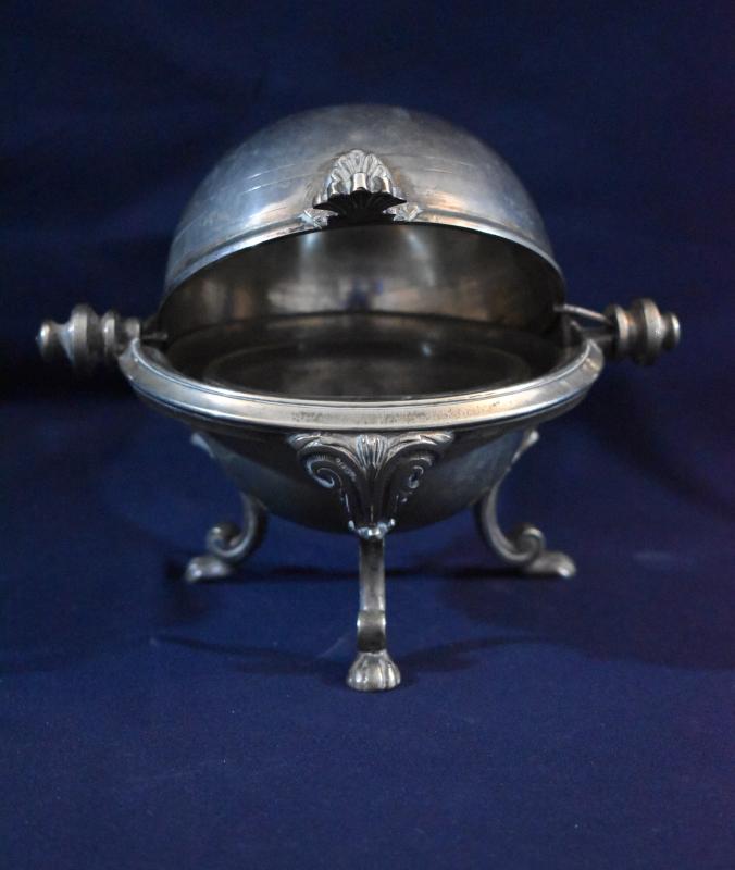 Recipiente de forma globular destinado a contener el inciense, cumple, por tanto, la función de las tradicionales navetas en forma de nave. En este caso el recipiente es semiesférico y va sostenido por cuatro patas en forma de "ce" con garras en el remate. El borde superior, saliente, tiene un asidero fundido y aplicado con motivos fitomorfos. El casquete de la pieza, igualmente semiesférico, pero ligeramente menor, gira noventa grados gracias a un vástago central que permite dicho giro y mantiene juntas ambas partes. Como elementos ornamentales reconocibles apenas tenemos unos listeles incisos en el casquete superior y unos perillones de fundición en los laterales.