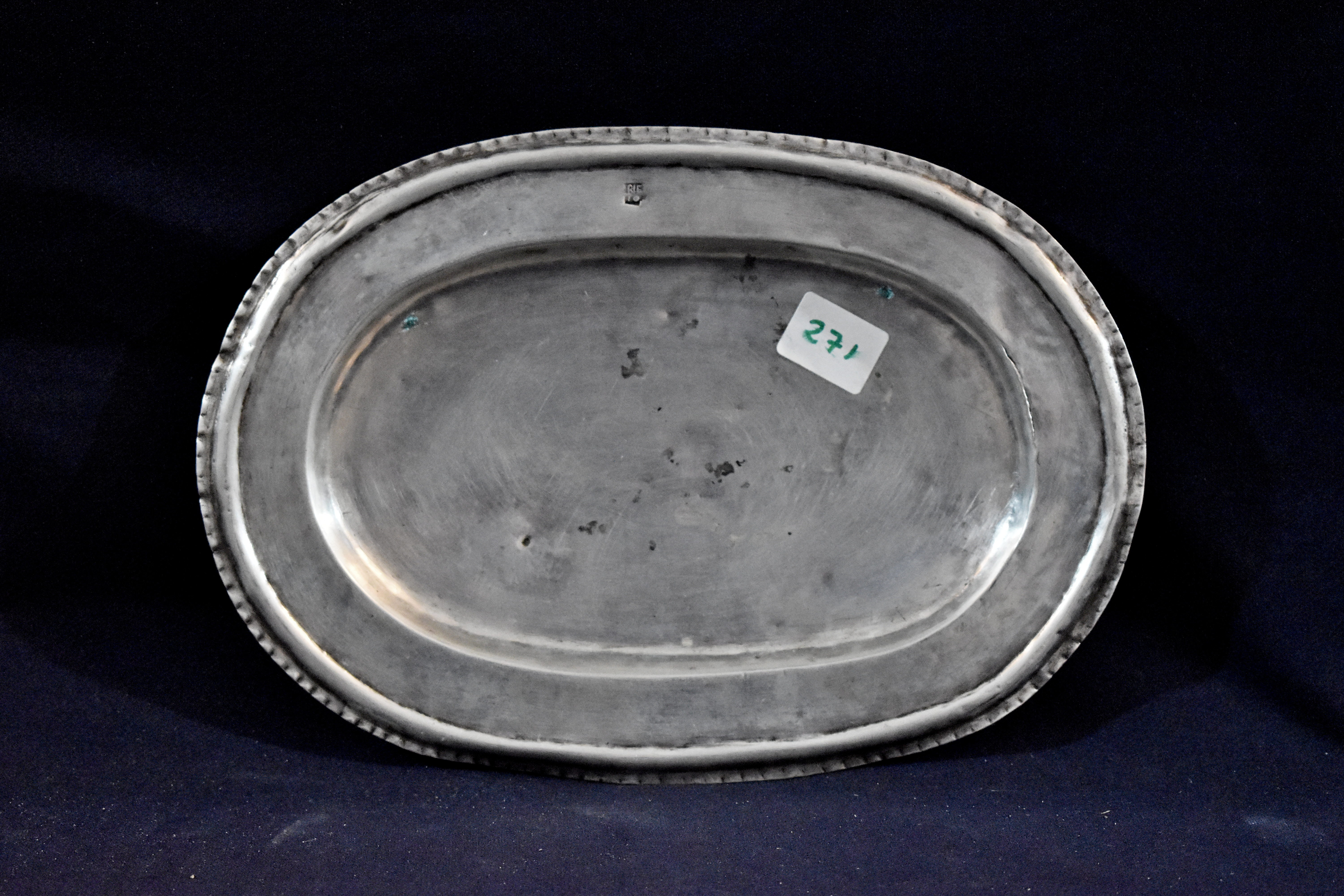 Bandeja lisa de borde moldurado y falda cóncava. Al interior