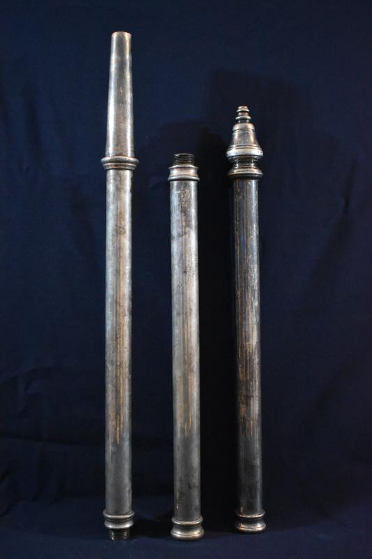 Varal compuesto por tres cañones cilíndricos que se enroscan entre sí para formar una única pieza. Carecen de decoración, más allá de las molduras cilíndricas o listeles que jalonan cada pieza. La pieza inferior remata en una especie de perillón con distintas molduras cóncavo-convexas.