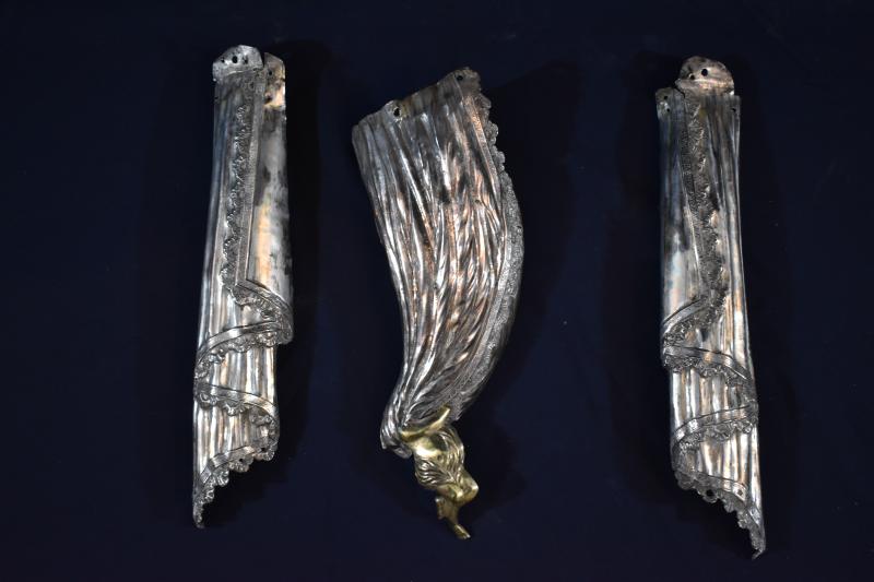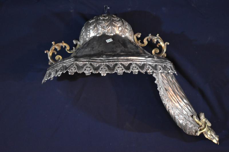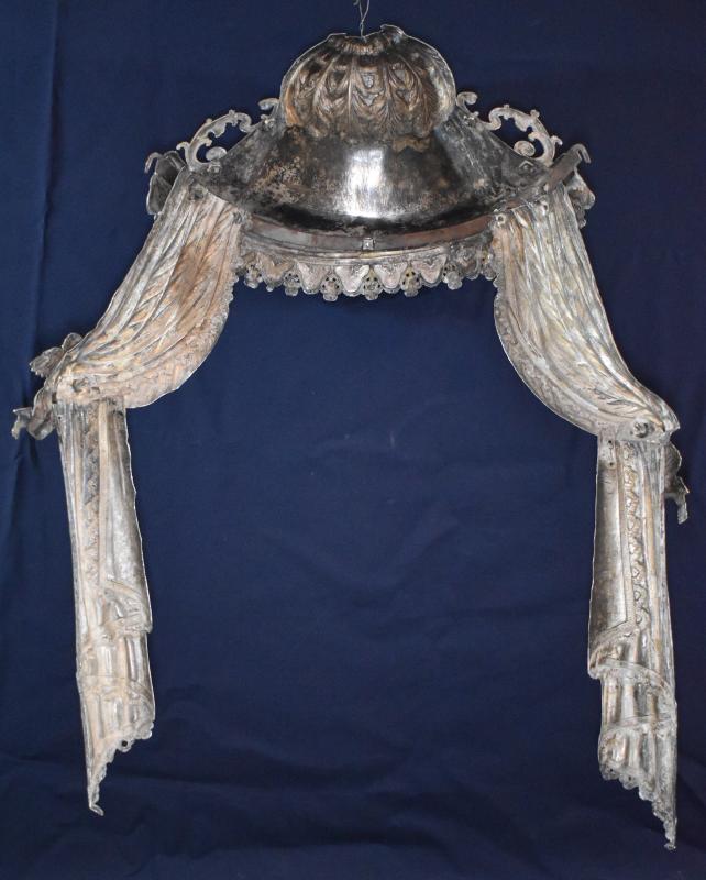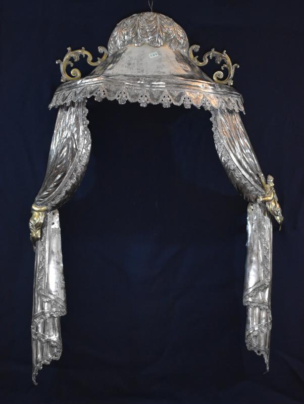 En su ubicación actual, ocupando la hornacina central del retablo mayor, la Virgen de la Encina está rodeada por una suerte de cortinaje de talla, rodeado por ángeles volanderos que parecen sostenerlo o descorrerlo para hacer visible la imagen. Por estampas antiguas parece que siempre gozó de alguna estructura similar, tanto cuando estaba en su retablo, como cuando se la bajaba de él. Este puede ser uno de ellos, quizá utilizado en algún altar portátil, pues su carácter removible parece implícito en la propia pieza de plata que se monta y desmonta en varias partes. En concreto, se compone de cinco piezas, cuatro para los cortinajes laterales (aunque tienen unos ángeles añadidos en la unión de las partes) y otra más para el remate con remate cupulado y guardamalletas. Todas sus decoración se resumen a motivos vegetales, a más de aquellos que contribuyen a dar verismo a la imagen de textil que originalmente tenían estas estructuras.