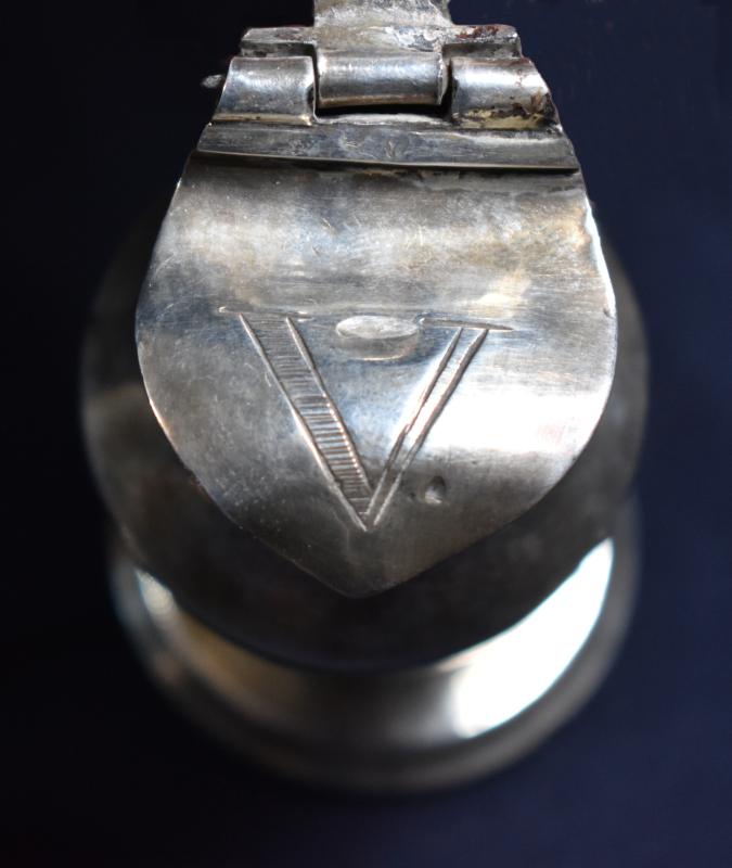 Cada vinajera marca su contenido: A (Agua) y V (Vino) con letras grabadas en el exterior de la tapa