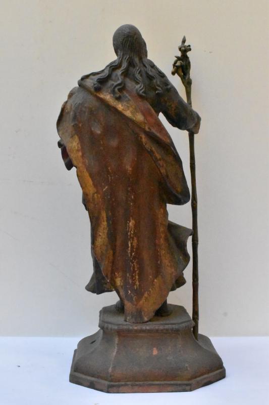 El santo, de pie, sostiene al Niño con el brazo izquierdo; con el derecho mantiene un larguísimo bordón rematado por floridas azucenas en su parte superior. Si bien el tratamiento del rostro es mejorable, por inexpresivo, destaca en el de los ropajes, con pliegues de mucho vuelo en las distintas vueltas del manto. El Niño, de gran movimiento de piernas y brazos parece levitar.