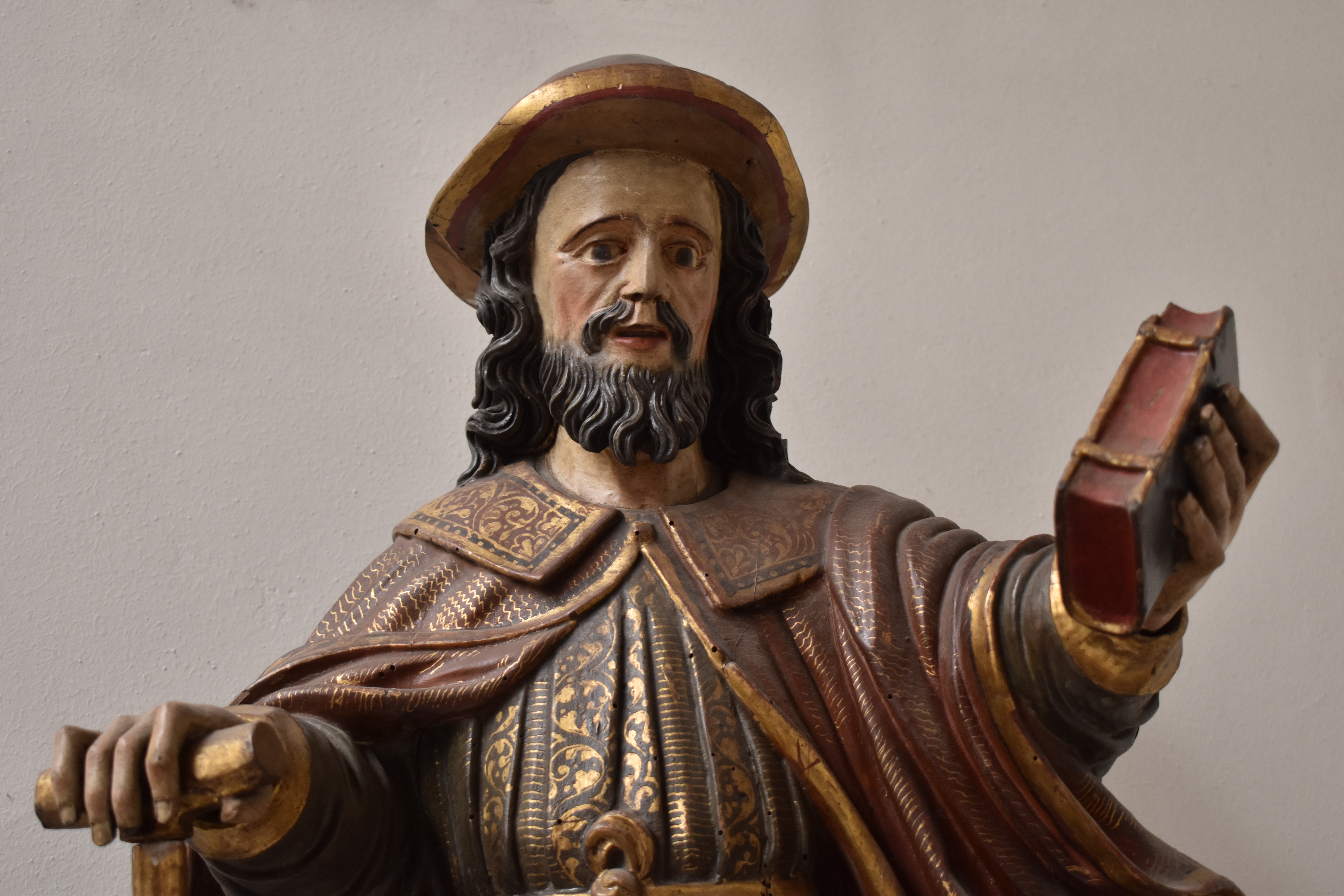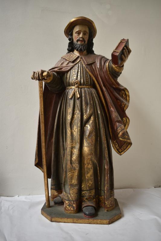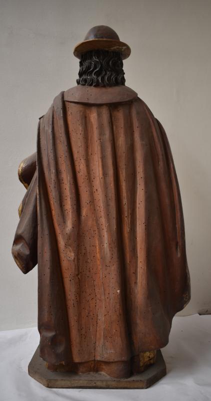 El sombrero de ala ancha con que se toca ha provocado que se haya pensado que esta talla podía representar a Santiago el Mayor.