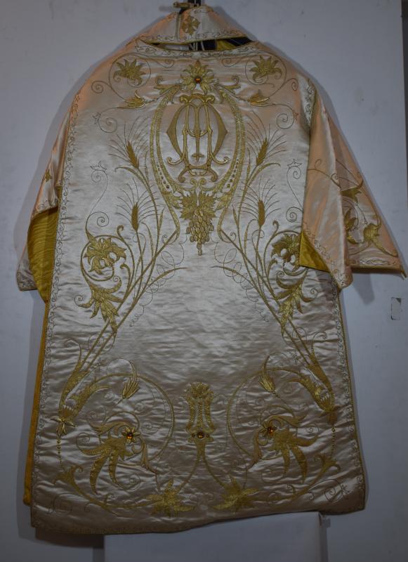 2 manípulos (anverso: corazón atravesado por puñal; reverso: anagrama mariano)