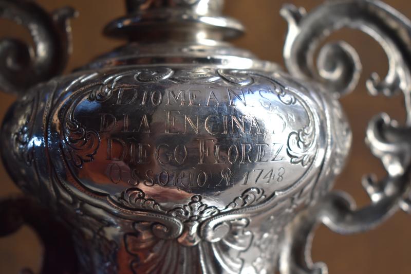 Inscripción en el nudo: "DIOME A Nª Sª / D LA ENCINA, Dn / DIEGO FLOREZ / OSSORIO. Aº 1748"