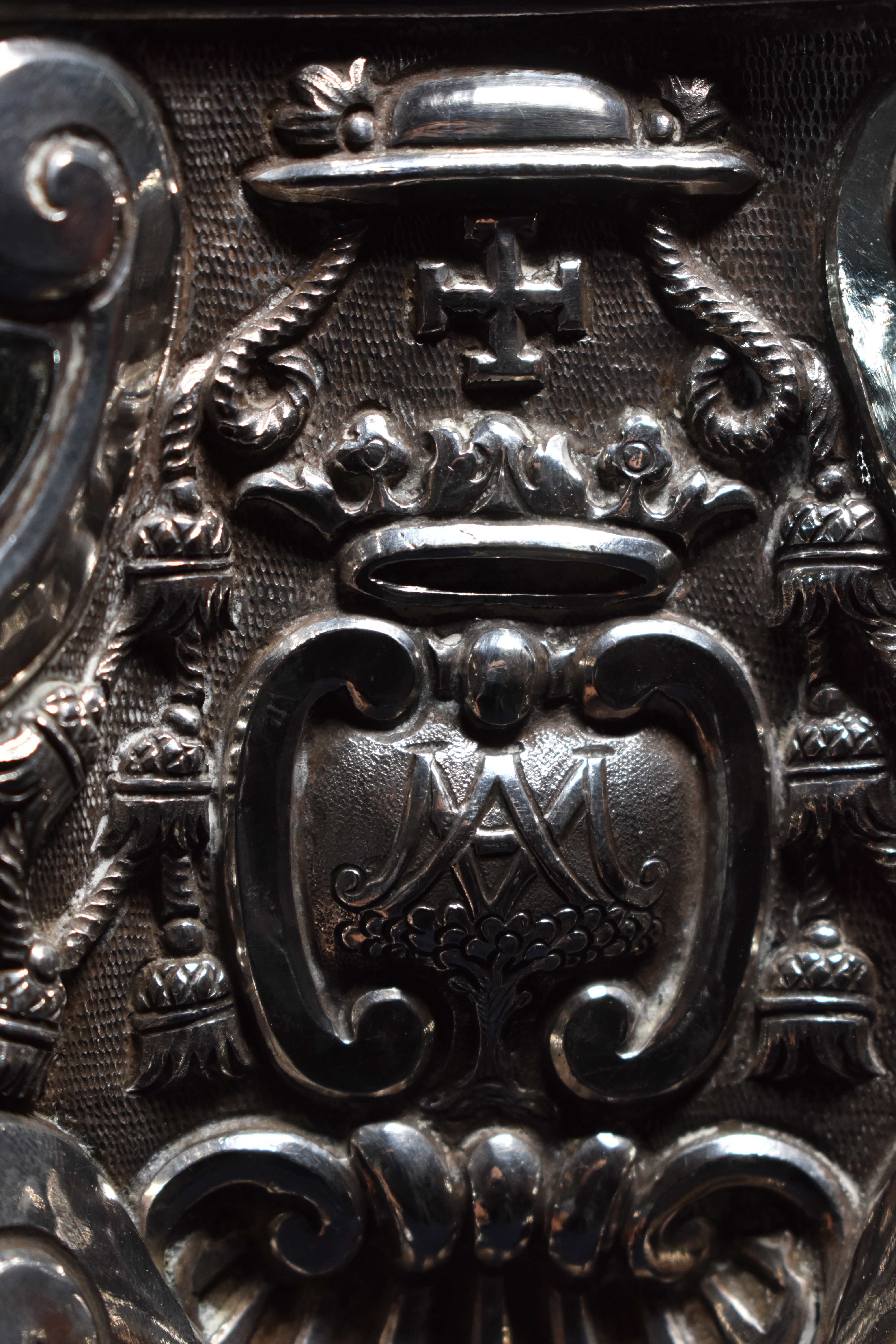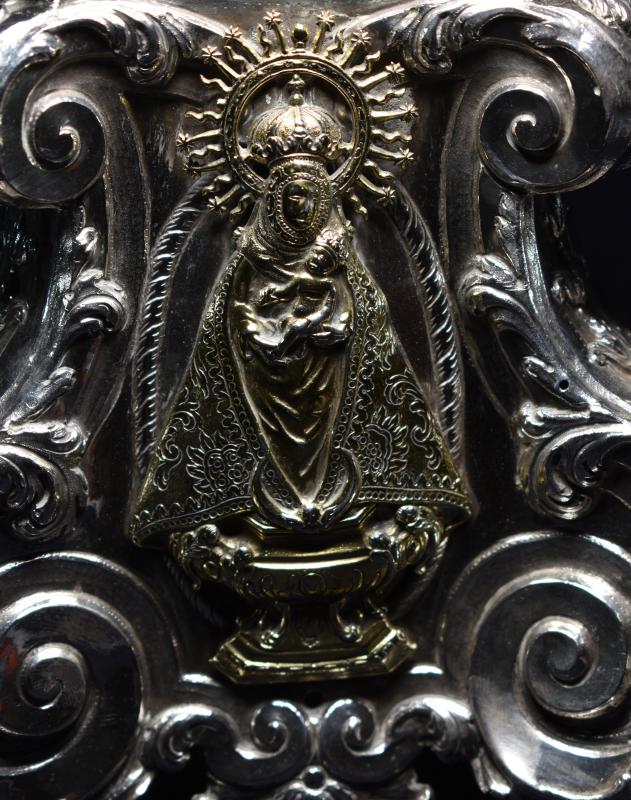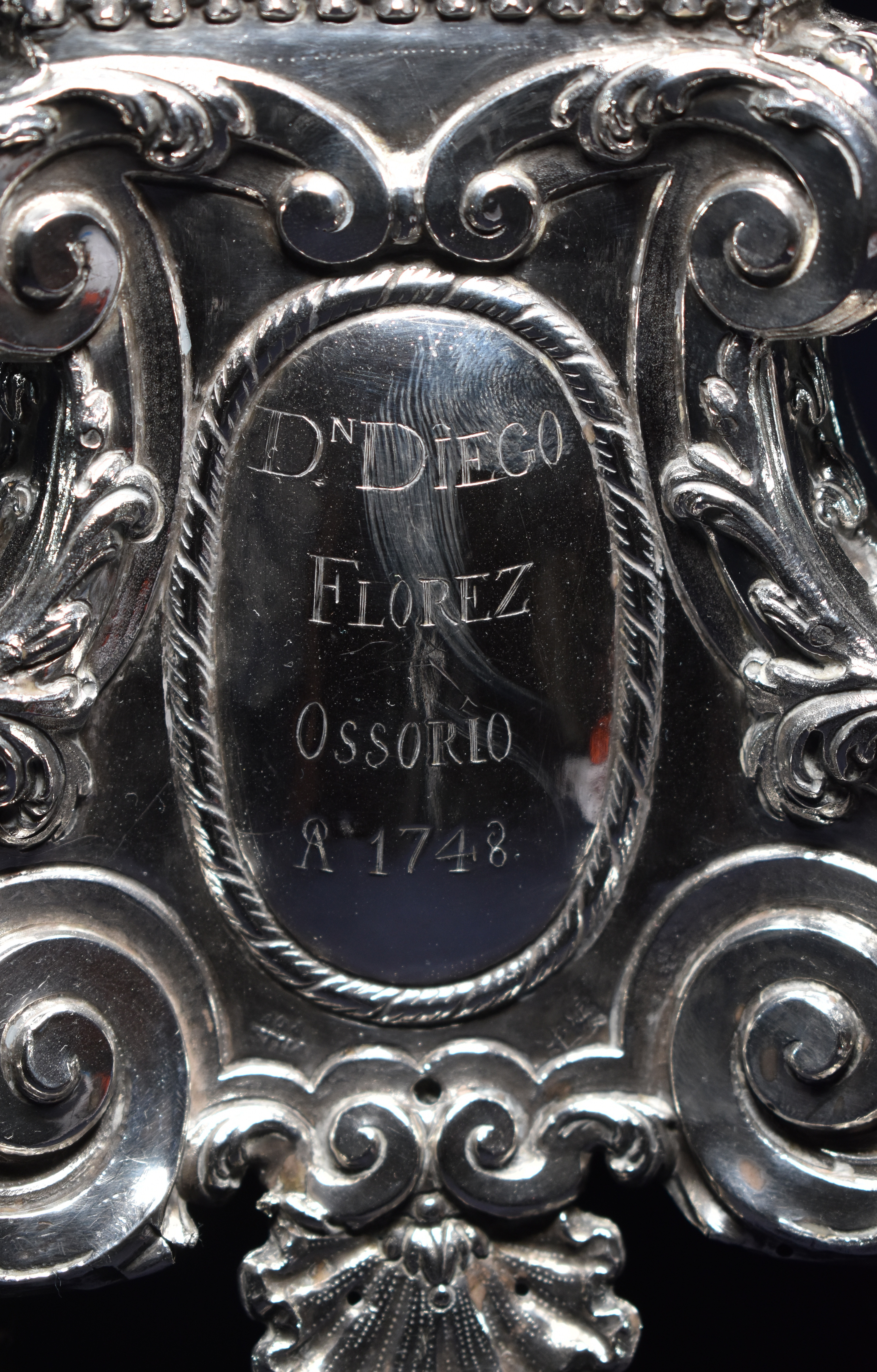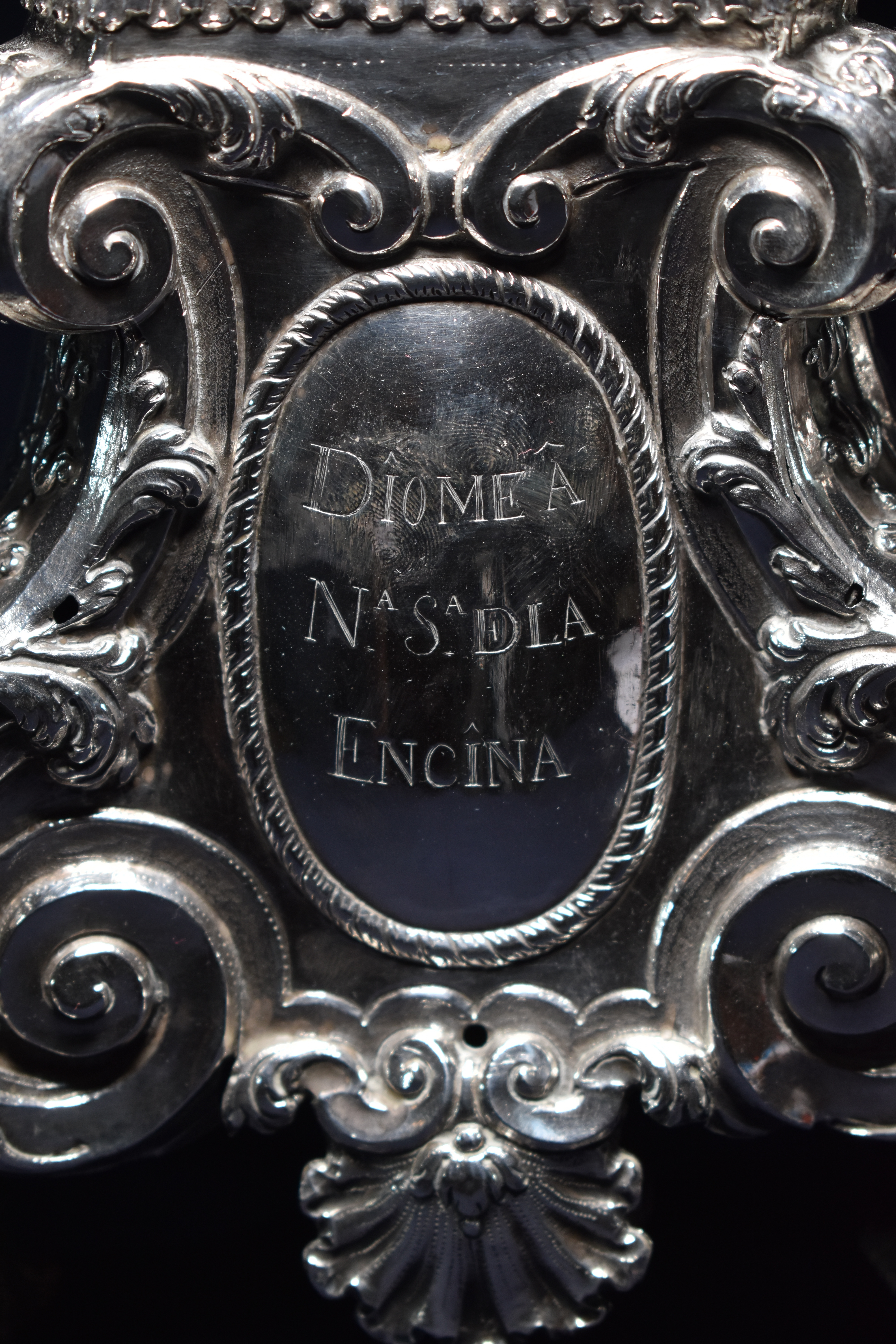 Inscripciones en la base de los grandes: "DIOME A Nª. Sª DE LA ENCINA", "Dn. DIEGO FLOREZ OSSORIO Aº 1748".