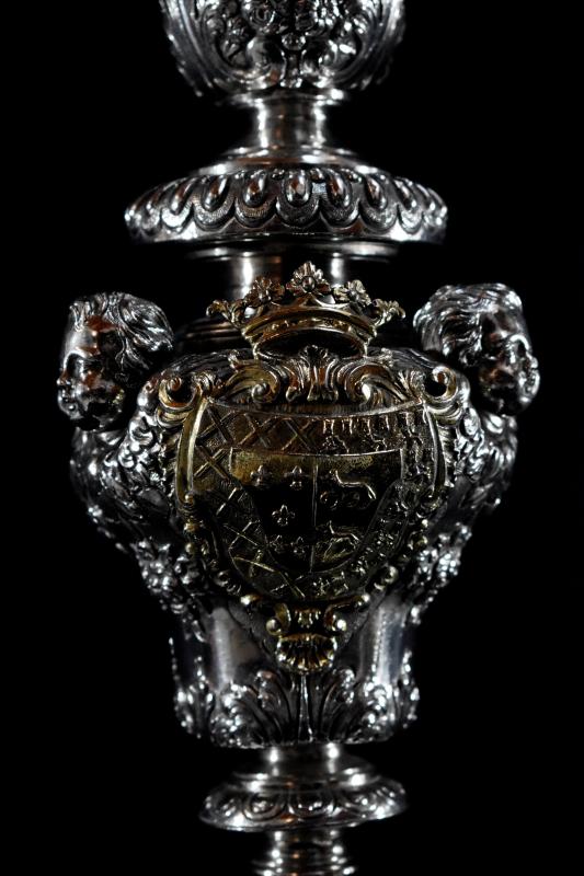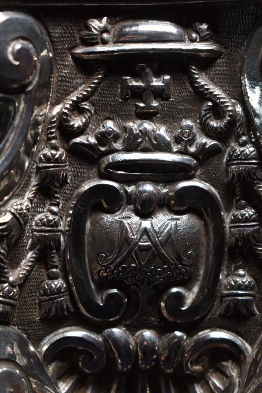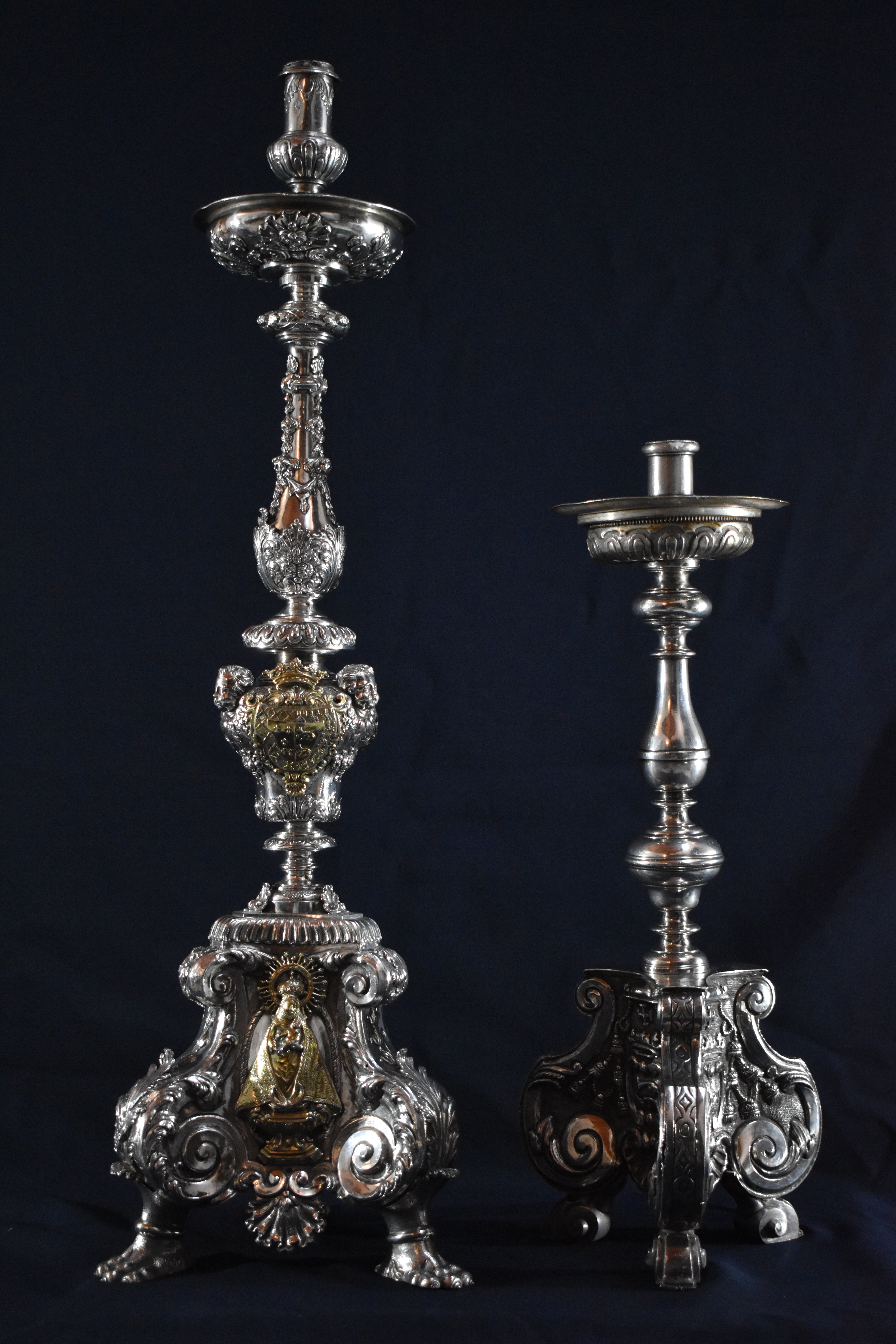 En los candeleros de menor tamaño el repertorio decorativo es mucho más somero, abundando los motivos geométricos y ahondando en una mayor pureza de líneas, por lo que cronológicamente cabe la posibilidad de que fueran más antiguos que los salmantinos. Llevan en su base las armas del prelado y distintos emblemas marianos.