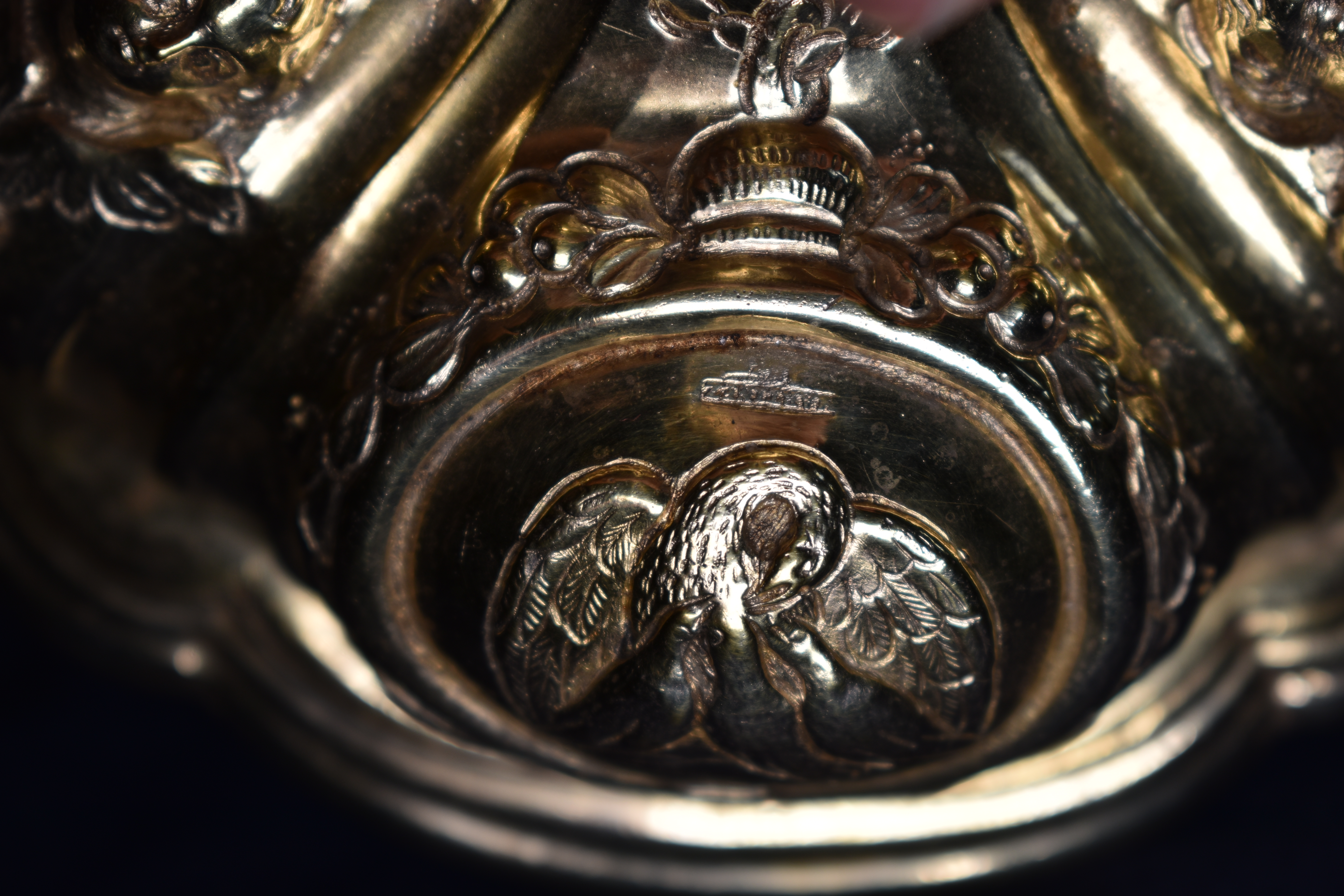 Punzones en el pie: ". / LVqVE" (Juan de Luque y Leiva, marcador), "MARTINEZ / [...]" y León rampante en escudete oval parcialmente frustro (Ciudad de Córdoba)