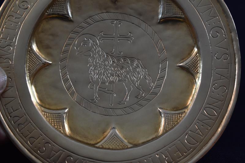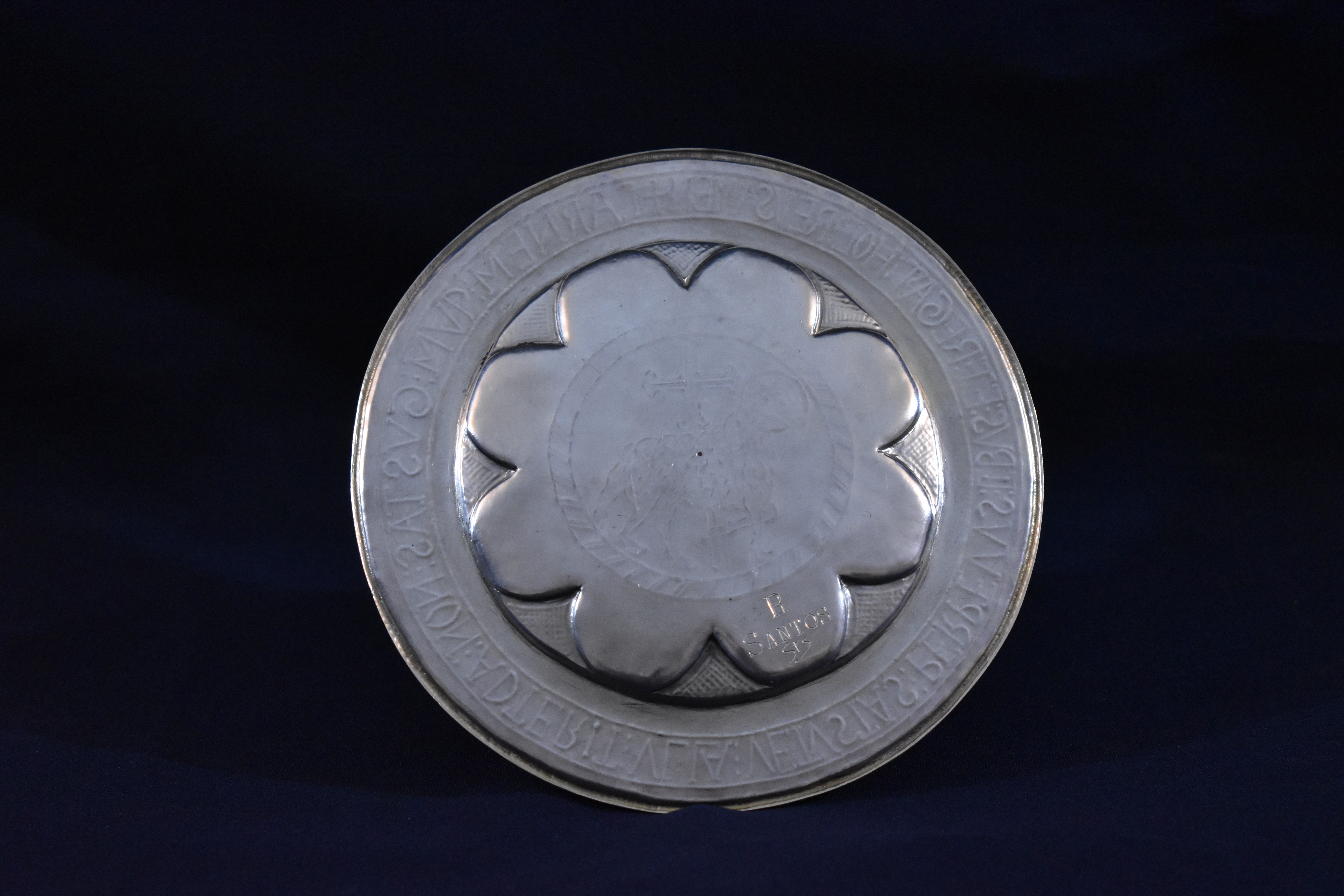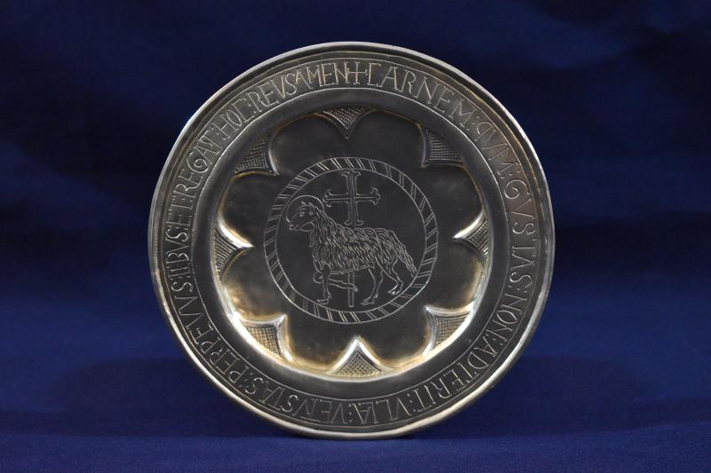 Reproducción de la patena del cáliz de Peñalba, de tamaño ligeramente menor que el original. Por lo demás resulta una copia fidedigna.