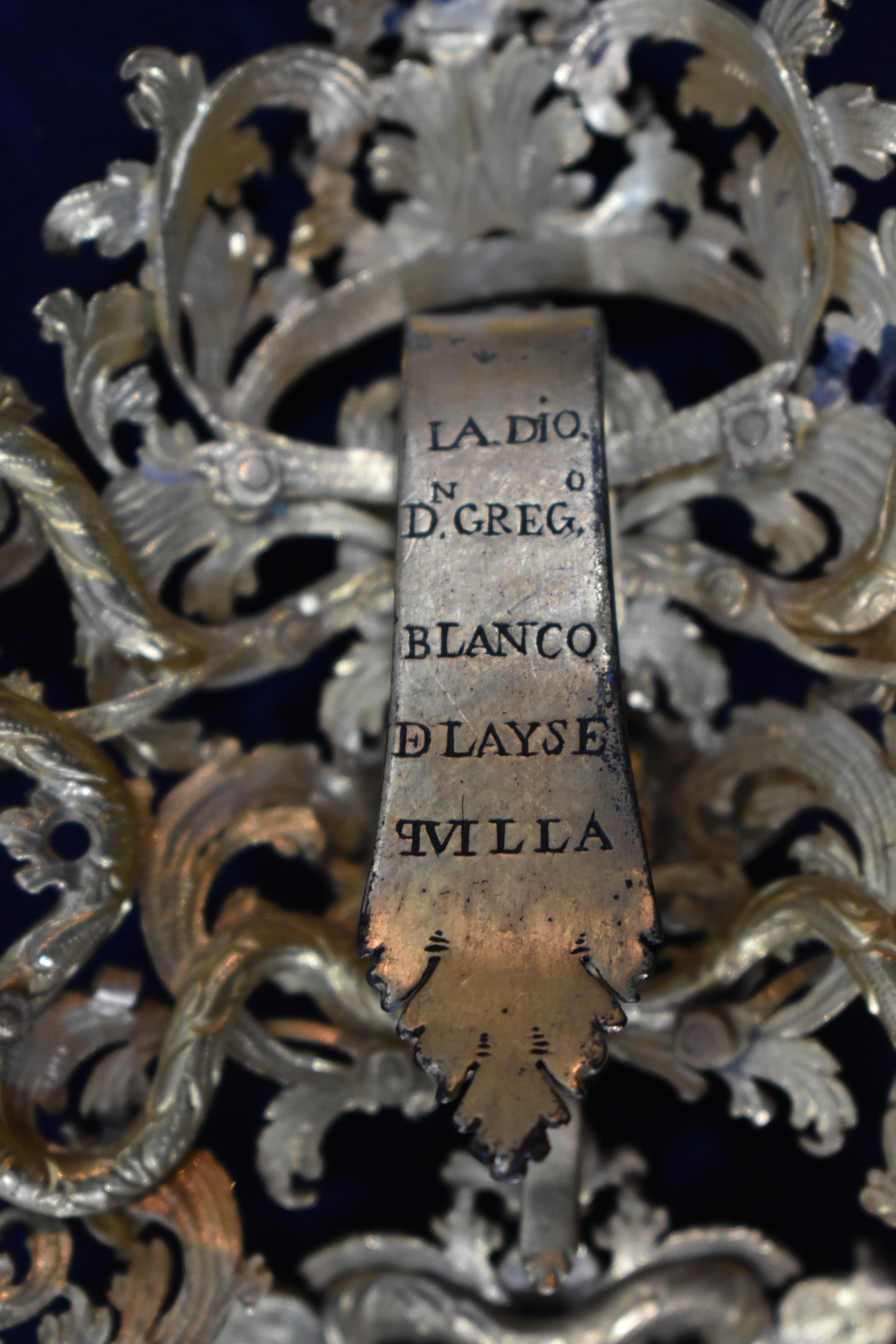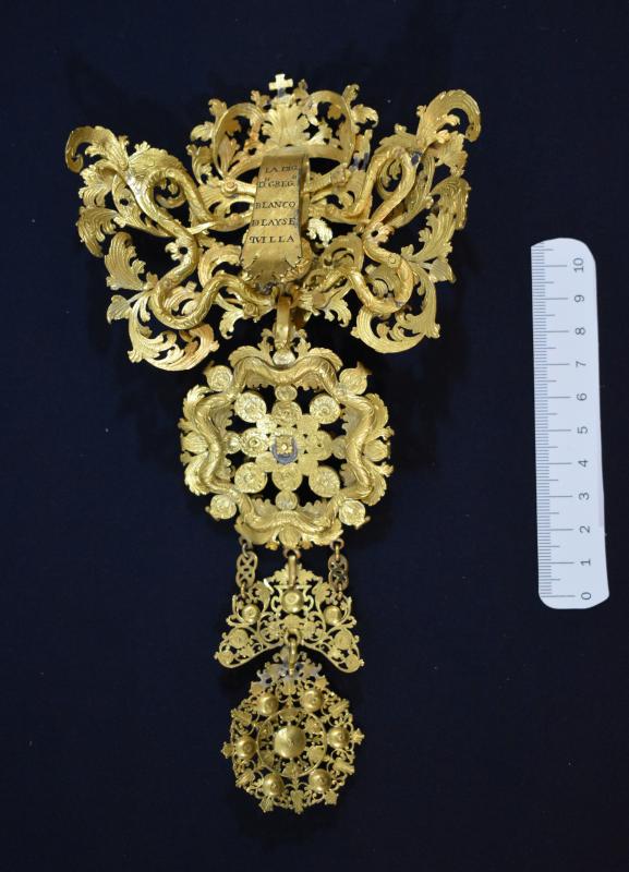 En el prendedor trasero se recoge la inscripción: LA DIO./DN. GREGº./BLANCO./DE LAYSE./QVILLA