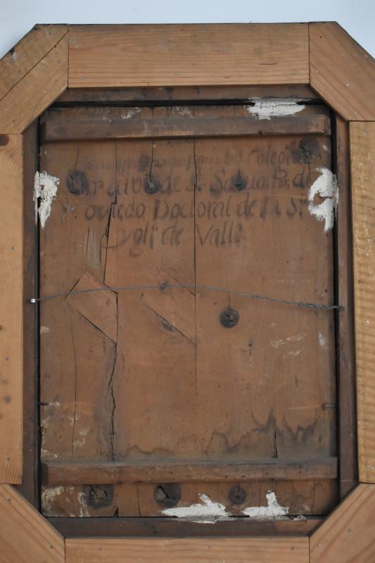 Inscripción en reverso: Dio esta pintura dn Joseph Flórez Oss[ori]o, colegial / maior de S. Saluador de / Oviedo, doctoral de la Sta. Ygl[esi]a d[e] Vall[adoli]d.