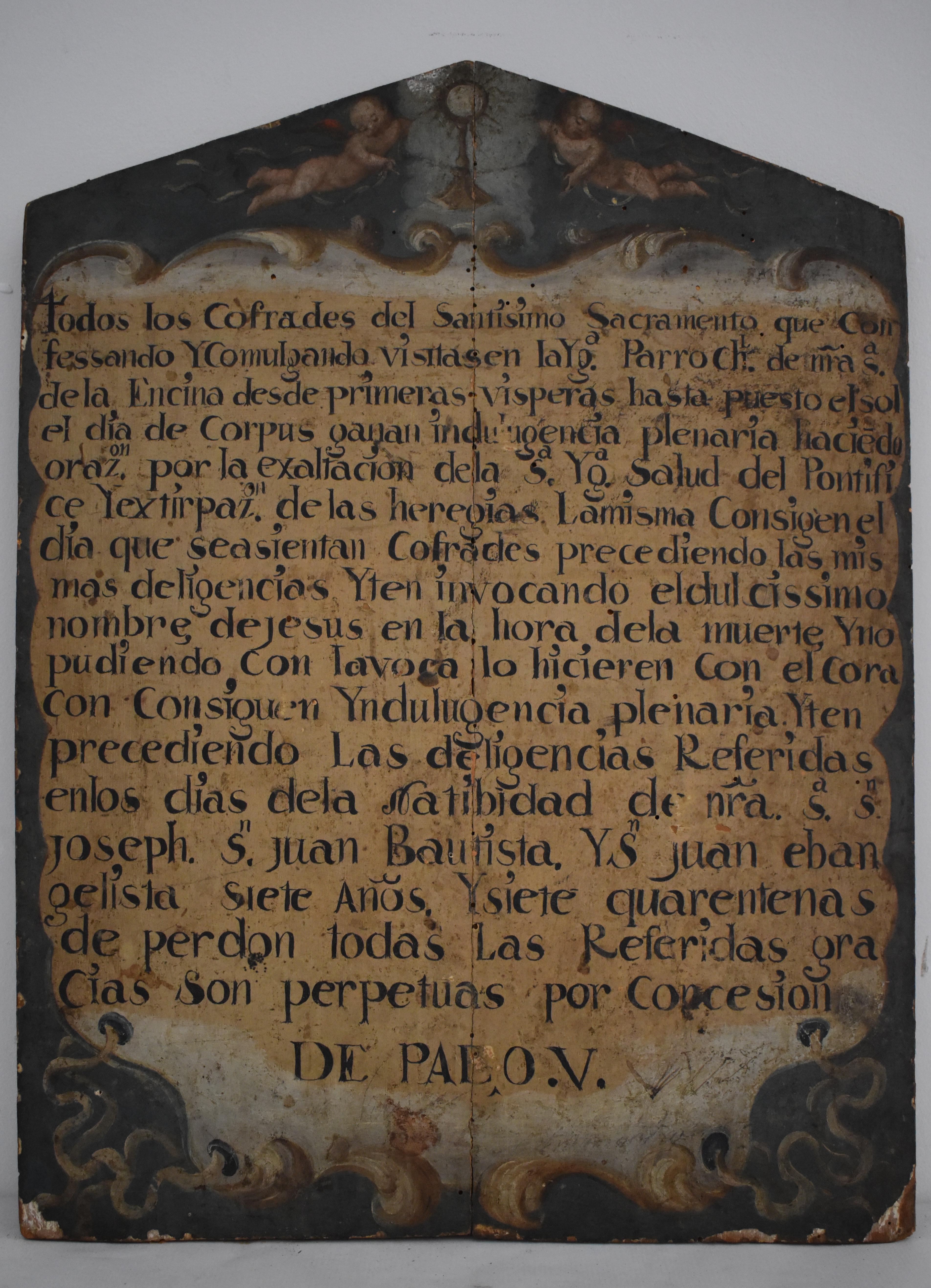 Las indulgencias concedidas en esta tabla a finales del siglo XVIII remiten a las que concedió ya el papa Pablo V, cuyo pontificado se extendió entre 1605 y 1621.