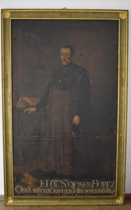 Retrato de gran formato que representa de cuerpo entero a José Flórez Osorio, ponferradino que fue obispo de Orihuela entre 1727-1737 (y posteriormente de Cuenca, hasta su fallecimiento en 1759). Legó un importante conjunto de bienes a La Encina "post mortem", pero ya antes había ido favoreciendo a la parroquia con la donación de determinadas obras de arte. En este caso, su condición de obispo de esta pequeña diócesis ayuda a fechar el lienzo.