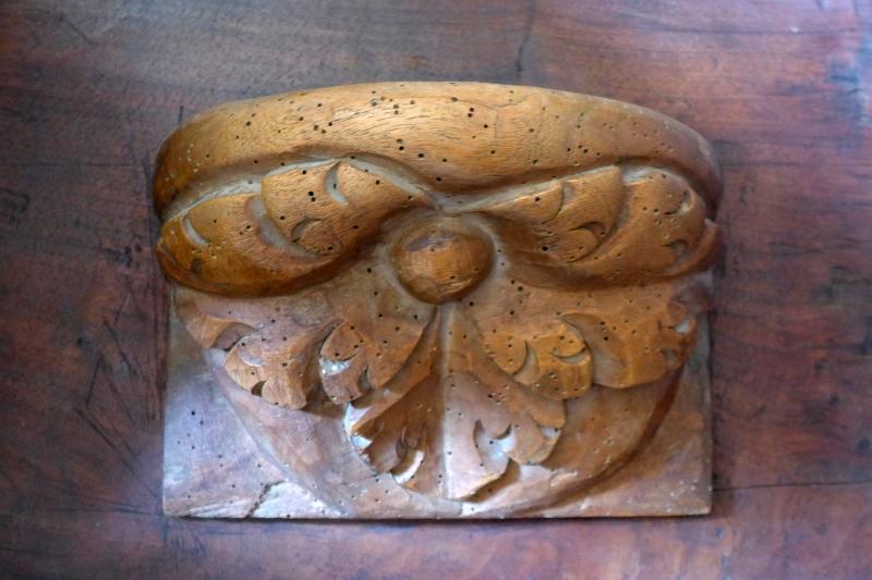 Pieza de madera de sección cuadrada, fijada a la parte inferior de su correspondiente estalo. La parte superior de la misericordia, la más ancha, es de planta semicircular, y servía para apoyarse. La decoración del cuarto de esfera de la parte inferior es floral, con tres grandes pétalos desarrollados a partir de un rehundido botón central.