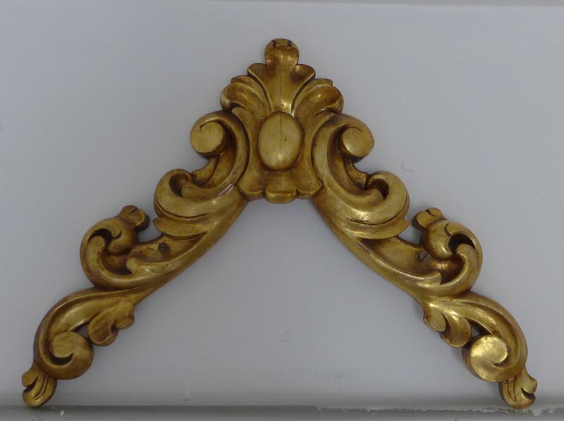 Cuatro molduras esquineras doradas idénticas que adornaron el marco del gran lienzo de "La batalla de Lepanto" que está en la sacristía vieja de la basílica de la Virgen de la Encina.