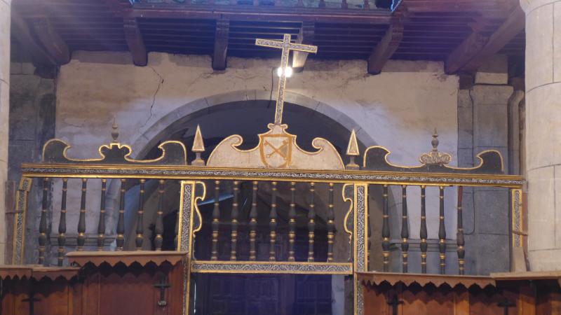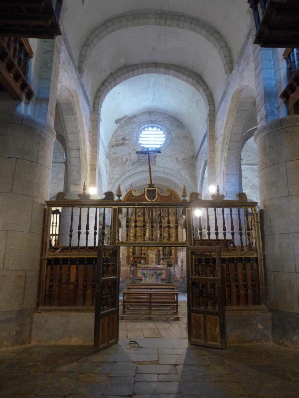 Rejas de madera que aíslan el coro bajo de los monjes y cierran el acceso al pueblo a la altura del transepto, de tal manera que estos espacios quedaban para uso privativo de la comunidad benedictina.