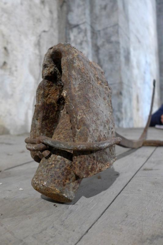 Posiblemente era el golpeador de la campana conectada al mecanismo del reloj, puesto que se conserva junto a ella