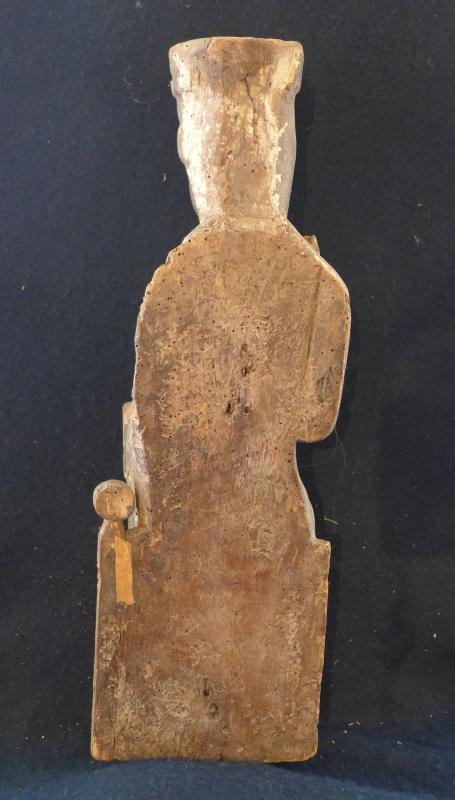 La base de la talla dispone de un pequeño orificio, centrado, abierto directamente en la madera, quizá para asegurar la talla en el punto en que estuviera expuesta, y no por necesidades procesionales, que no parece que haya sido el caso.