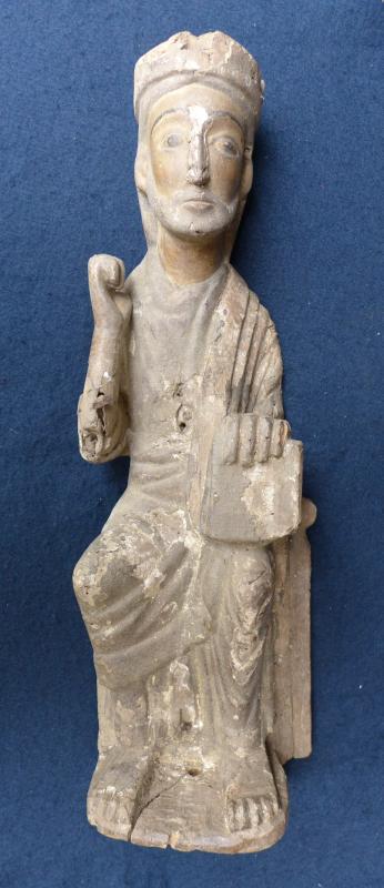 Talla bastante plana, sin llegar a ser de las llamadas "de chuleta" y sin estar vaciada por su parte posterior. Representa al Salvador, sedente en un sencillo faldistorio, y mostrando un libro abierto que sujeta con la mano izquierda sobre la rodilla del mismo costado.
