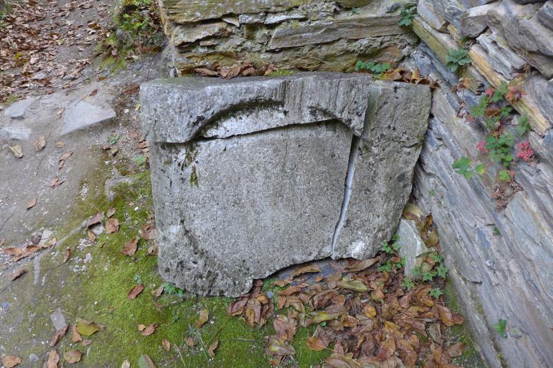 Fragmento de una piedra mucho mayor (partida por varios sitios) con rebaje circular de escasa profundidad pero gran diámetro y apariencia de desagües.