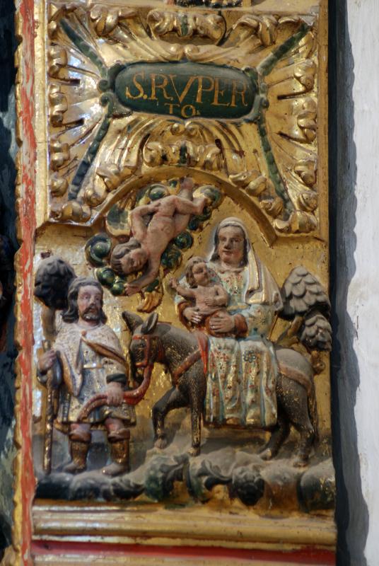 De abajo a arriba, se representa (cada panel mide unos 60 cm de altura): la Huida a Egipto; San Ruperto; Aparición de la Virgen a san Anselmo.
