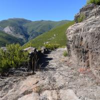 Tramo del canal CN-2 de Las Médulas tallado íntegramente en la roca caliza. El corte se sitúa en las inmediaciones de la Cueva de San Genadio, aguas abajo de esta.
